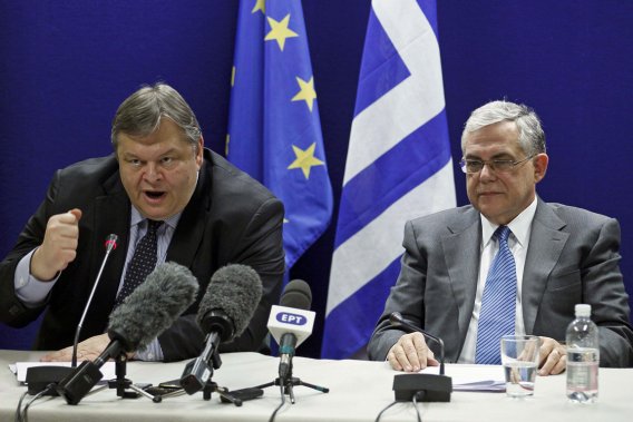 Photo Reuters Le ministre grec de Finances Evangélos Vénizélos et le premier ministre Lucas Papademos.